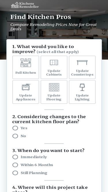 88%Complete the short form below to receive competing kitchen remodel estimates. It's risk-free and without obligation. Our network of kitchen specialists compete for your business