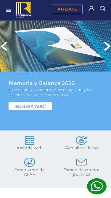 82%Las AFAP y el BPS forman en conjunto el actual Sistema Previsional, llamado Sistema Mixto. República AFAP es una empresa uruguaya de fondos de pensiones de propiedad estatal, con sede en Montevideo. Tiene una participación del 38% en el mercado a partir de 2010 y cuenta con más de 20 sucursales en todo el país. Teléfono 0800 2888