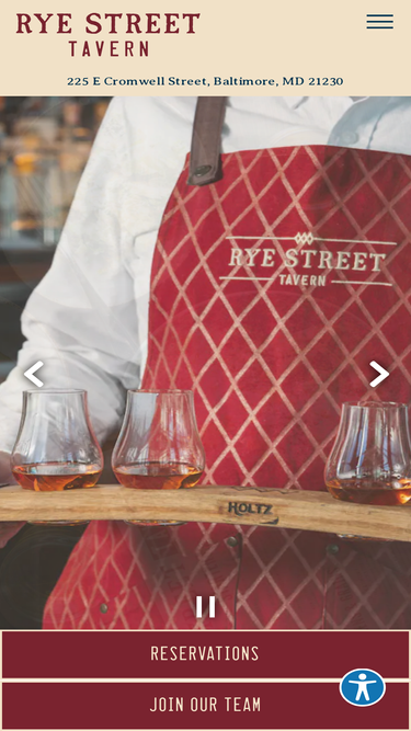 87%Rye Street Tavern in Baltimore, MD. Thoughtfully crafted menus will change seasonally and feature locally sourced ingredients, oysters, southern influenced cuisine, and house-made pastas, along with vegetarian, vegan and gluten-free dishes.