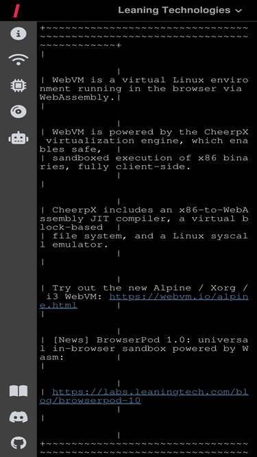97%server-less virtual machine, networking included, running browser-side in html5/webassembly. code in any programming language inside this linux terminal.