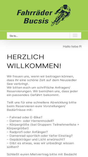 53%herzlich willkommen! wir freuen uns, wenn wir beitragen können, dass ihr eine schöne zeit auf dem neusiedler see verbringt. wir bitten euch um schriftliche anfragen/ reservierungen. wir bemühen uns, dass jeder ein passendes gefährt bekommt. teilt uns für eine schnellere abwicklung bitte beim reservieren eure vorstellungen/ bedürfnisse mit: - fahrrad oder e-bike? - damen- oder herrenmodell? -