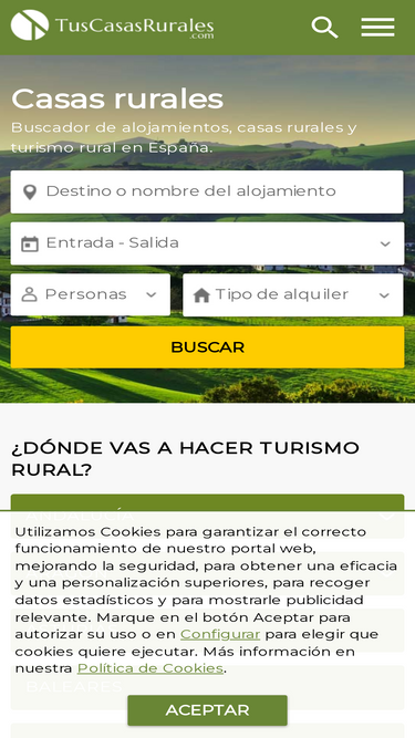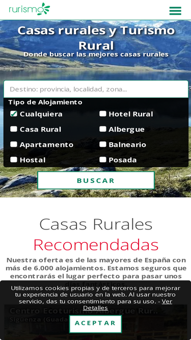 99%le ofrecemos nuestra guía de casas rurales de españa, escoja según sus preferencias y ofertas: recomendadas, alquiler variable, situadas en el centro o en las afueras y más o menos cerca, diferentes precios (baratas, asequibles y caras) y con ofertas, capacidades, equipamientos y servicios, eventos y ambientes para todos los públicos,... son alojamientos ideales para disfrutar del turismo en el territorio español