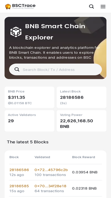 bsctrace is a blockchain explorer and analytics platform for bnb smart chain. it enables users to explore blocks, transactions and addresses on bsc