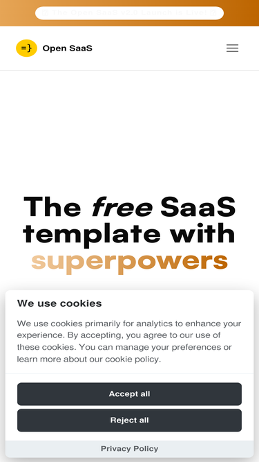 65%Free, open-source SaaS boilerplate starter for React & NodeJS. Powered by Wasp.