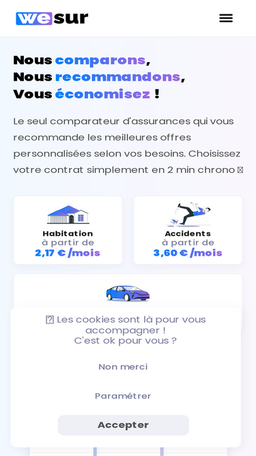 89%WeSur, le seul comparateur d'assurances qui vous recommande les meilleures offres personnalisées selon votre profil parmi +30 marques d'assurances.