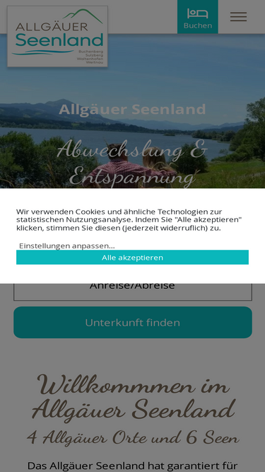 86%urlaub zu zweit oder ein familienurlaub im allgäuer seenland. baden in klaren badeseen, wandern, radfahren, skifahren und eine abwechslungsreiche kultur erwarten sie. für übernachtungen hat das allgäuer seenland zahlreiche unterkünfte wie ferienwohnungen, hotels, pensionen, campingplätze und wohnmobilstellplätze.