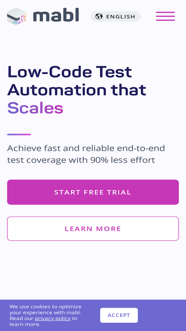 90%Your privacy is important to mabl Inc. Learn about mabl's privacy policy and what kind of information we collect/how we use it. Read our Privacy Policy here.