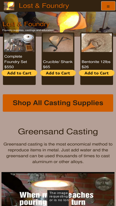 37%"Green" sand casting is the most affordable method to reproduce items in metal. Our supplies and furnaces are being used around the world!