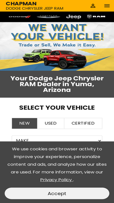 99%chapman dodge chrysler jeep ram serving yuma, arizona. car, truck and suv specials. service and more contact us at 928-344-2650.