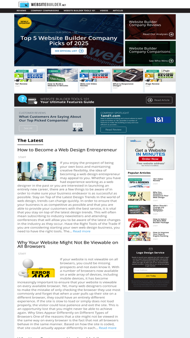 The other five competitors in the top 10 list are ibuilt.net, ezweb123.com, 2createawebsite.com, 1and1.com, and websitebuilder.net.