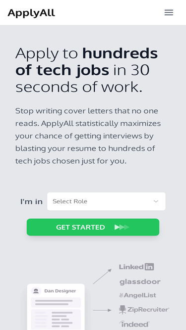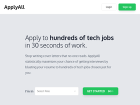 82%Stop writing cover letters that no one reads. ApplyAll statistically maximizes your chance of getting interviews by blasting your resume to hundreds of tech jobs chosen just for you.