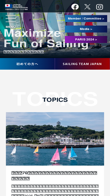 (公財)日本セーリング連盟 公式会Webサイトです。各国のセーリング連盟と共にヨットレースの主催、指導・審判・計測員の育成、安全に関する調査や研究、ヨット・セーリングの普及等、ヨットに関する全ての活動を推進しています。