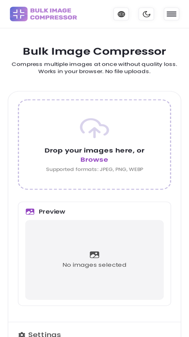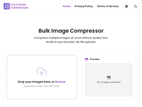 90%Mampatkan pelbagai imej sekaligus dengan Pemampat Imej Pukal. Menyokong JPEG, PNG, WEBP dan lain-lain. 100% peribadi dan selamat.