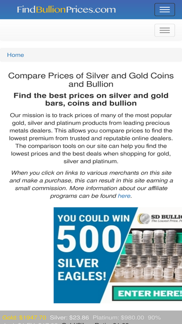 84%Track and compare real-time silver prices from top bullion dealers. Find the lowest premiums on silver bars, coins, and rounds. Updated live with spot price.