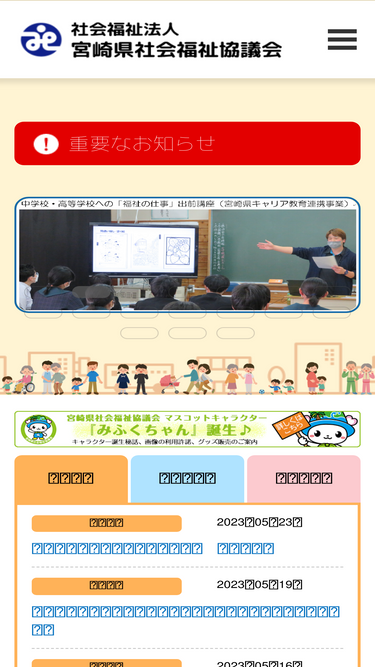 92%宮崎県社会福祉協議会は、「社協」の略称で知られている宮崎県の福祉団体です。「県民一人ひとりが安心して暮らせるまちづくり」を目指し、福祉の向上に向けたいろいろな活動を行っています。ホームページのお問合せは企画課(担当:秋本)までお知らせください。
