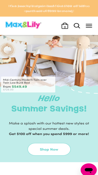 74%Save space in retro style with our Mid-Century Modern Twin Over Twin Low Bunk Bed. At just over 48 inches tall, this modern low bunk bed is perfect for little ones sleeping in a “big kid” bed for the very first time. The top bunk has two ladder entrances, allowing you to place the ladder on the front or the end of the bed to fit your space. Tall guard rails on the top bunk help keep sleepers secure all night long. Features You’ll Love: Perfect for sharing (if they want to)! Choose a different bed each night, or create the ideal shared room or ultimate sleepover headquarters. Plenty of headroom on the bottom bunk = your favorite storytime spot. Stacked sleeping surfaces open up more room for play. What Parents Will Appreciate: Sleek silhouette with no visible hardware and a solid pine wood and white melamine finish creates a modern, mid-century style. Strong plywood slats and metal support bars create a high 400 lb. resting weight capacity per bunk. Rounded edges near the ladder entrances make climbing into bed extra safe. Includes easy-to-read instructions and all the tools you need for a quick setup. Bed ships in one box and is heavy due to solid wood construction. Safety is our #1 priority. All our furniture is tested to meet or exceed US safety standards – and we repeat those tests every single year. Max & Lily® is a member of the Maxwood family of brands – the kids’ furniture experts – bringing a tradition of superior quality, safety and fun!