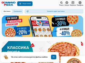 79%Заказать сочную и горячую пиццу с быстрой бесплатной доставкой в Москве на дом или в офис. Снэки, десерты, напитки, крылья, картофельные палочки, стрипсы и лучшие акции от Domino Pizza