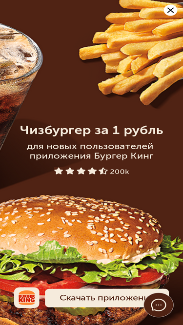 89%вся информация о продукции бургер кинг (burger king), актуальное меню на сегодня, купоны, акции, подробное описание блюд, вес, калории
