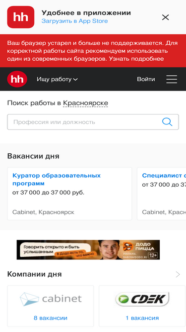 98%spb.hh.ru — сервис, который помогает найти работу и подобрать персонал в Санкт-Петербурге более 20 лет! Создавайте резюме и откликайтесь на вакансии. Набирайте сотрудников и публикуйте вакансии.
