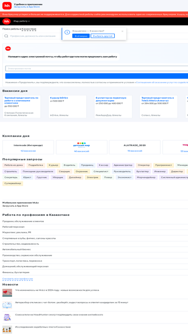 86%hh.kz — сервис, который помогает найти работу и подобрать персонал в Казахстане! Создавайте резюме и откликайтесь на вакансии. Набирайте сотрудников и публикуйте вакансии.