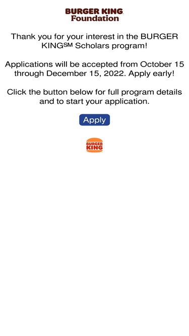 100%the burger king scholars: have it your way foundation scholarship application portal enables people to achieve their dream of attending college.