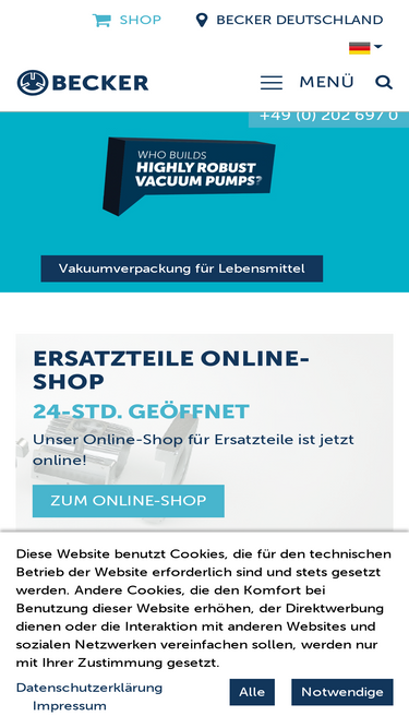 95%Vakuumpumpen Hersteller ✔ Erfahrung seit 1885 ✔ Erfinder der ölfreien Vakuumpumpe ✔ Pumpen für härteste industrielle Bedingungen von ➤ Becker