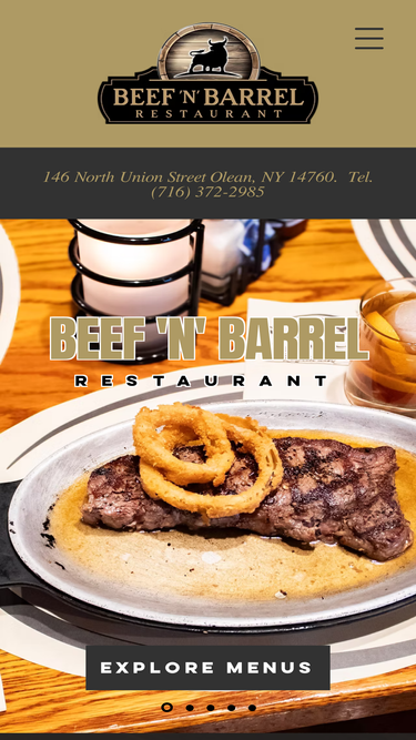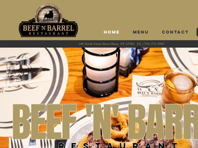 87%Explore the full menu at Beef ’N’ Barrel, a family owned premier beef and steakhouse in Olean, NY. From hand-cut steaks and hearty beef dishes to appetizers, fresh salads, desserts, and specialty drinks, our menu showcases quality, tradition, and flavor in every bite.