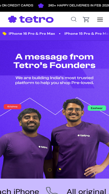 Buy premium pre-loved iPhones with a 1-year warranty from Tetro. No repair history, 50-point quality check, verified Apple report, and fast 4-day delivery across India. Open-box delivery option in Bengaluru.