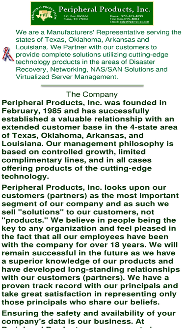 100%we are a manufacturers' representative serving the states of texas, oklahoma, arkansas and louisiana. we partner with our customers to provide complete solutions utilizing cutting-edge technology products in the areas of disaster recovery, networking, nas/san solutions and virtualized server management