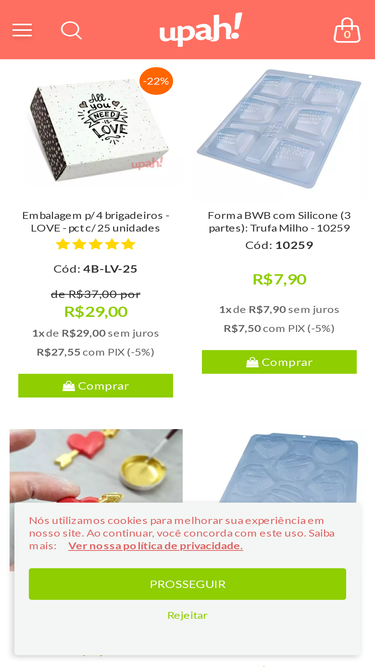 82%loja virtual de embalagens e acessórios para brigadeiros, cupcakes, doces, salgados, bolos, batata frita e etc.