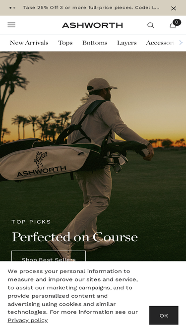 87%This Privacy Policy describes how North American Golf LLC d/b/a Ashworth (the “Site” or “We” or “Our”) collects, uses, and discloses your Personal Information when you visit or make a purchase from the Site. 1. Contact After reviewing this policy, if you have additional questions, want more information abo