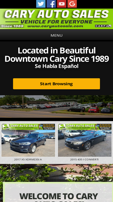 73%Cary Auto Sales is a used car dealership located in downtown Cary. We sell local, one owner quality preowned vehicles and economy cars. Our current inventory usually includes Honda, Toyota, Mazda, Nissan and Hyundai All of our vehicles have a clean CARFAX and we offer rates as low as 1.9%.