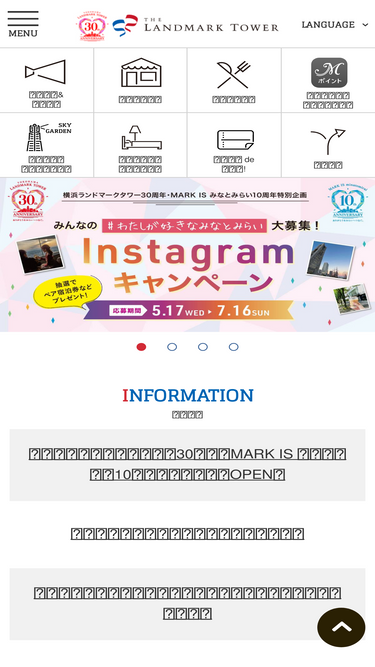 100%横浜ランドマークタワーは、タワー棟を中心とするオフィス、ホテル、ショッピングモールを核に、展望フロアや多目的ホール、さらには石づくりのドックを復元活用した広場など、多彩な施設を併設しています。