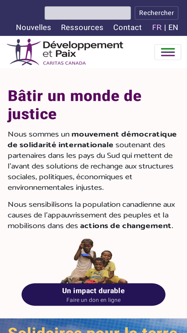 81%En faisant un don à Développement et Paix – Caritas Canada, vous contribuez à redonner la dignité aux populations vulnérables et à bâtir un monde plus juste. Merci !