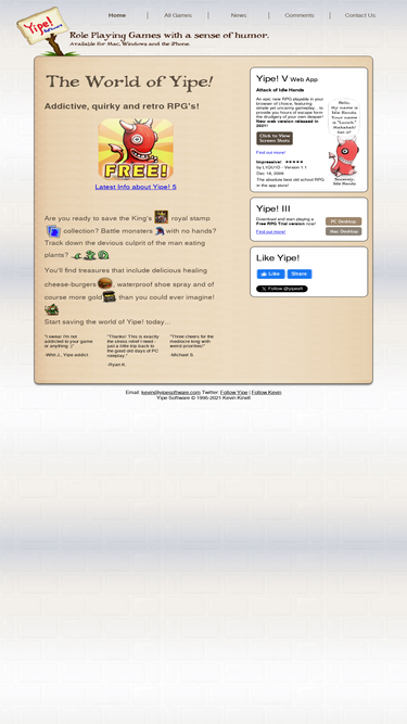100%the yipe series of rpg's give you hours of addictive gameplay in a fun and retro style. yipe has a shareware desktop rpg available for mac and pc and both a free lite and full version rpg available for the iphone.