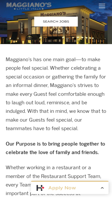 100%Maggiano’s has one main goal—to make people feel special. Whether celebrating a special occasion or gathering the family for an informal dinner, Maggiano’s strives to make every Guest feel...