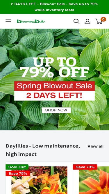 82%Flower bulbs, perennials, amaryllis, paperwhites, tulips, daffodils, dahlias, begonias, caladiums, daylilies, astilbe, gladiolus, hostas, lilies, peonies, phlox, strawberries, anemones, allium, grass, hyacinths, iris, crocus, muscari, ranunculus.