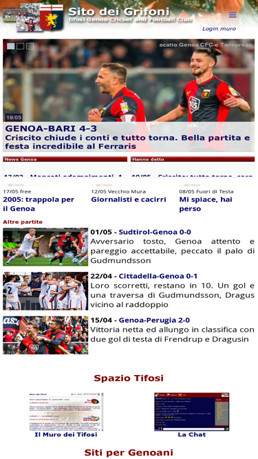 95%Tutto sul campionato del Genoa. Il Muro dei Grifoni. La Chat dei Grifoni.