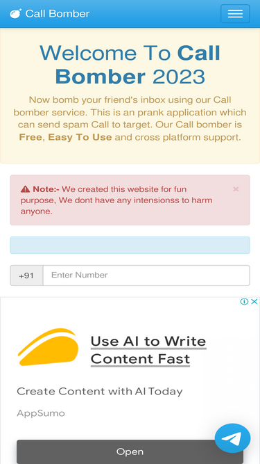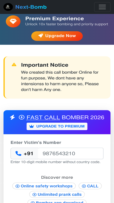 the unlimited call bomber is here now, we have updated our bomber's algorithm now you can send upto 1000 call per hour. check out the best call bomber 2025.