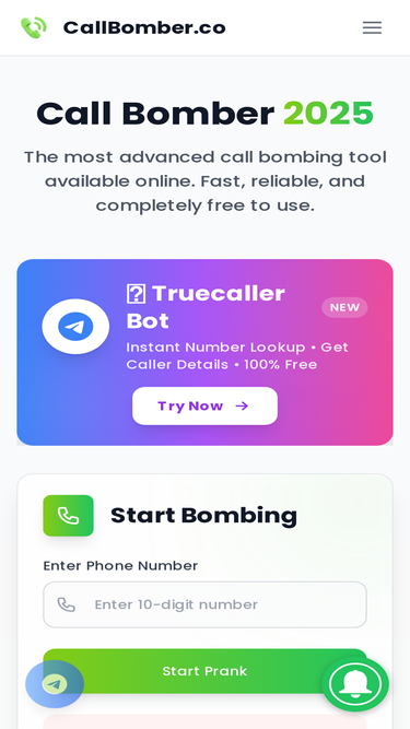 Call Bomber 2025 - The fastest and most powerful free call bomber tool online. Send unlimited prank calls and SMS messages instantly. 100% free, secure, and user-friendly.