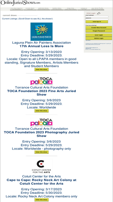 94%the artist's resource for juried art competitions, artist festivals and calls for exhibition proposals.
