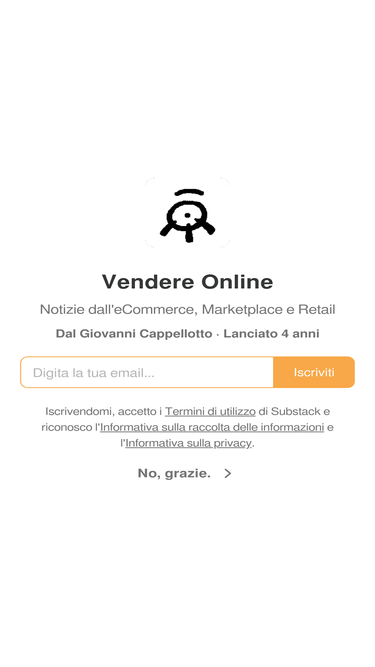 61%Notizie dall'eCommerce, Marketplace e Retail. Click to read Vendere Online, by Giovanni Cappellotto, a Substack publication with hundreds of subscribers.