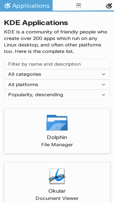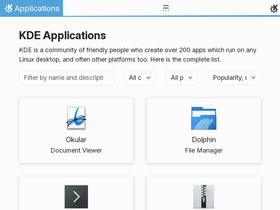 100%KDE is a community of friendly people who create over 200 apps which run on any Linux desktop, and often other platforms too. Here is the complete list.