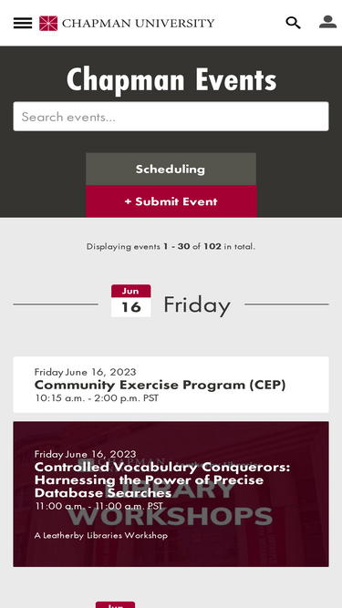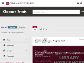 73%Whether you're in to sports, movies, theatre or music, there's always something new and exciting happening at Chapman! Here is just a slice of the intriguing events coming soon at Chapman University.
