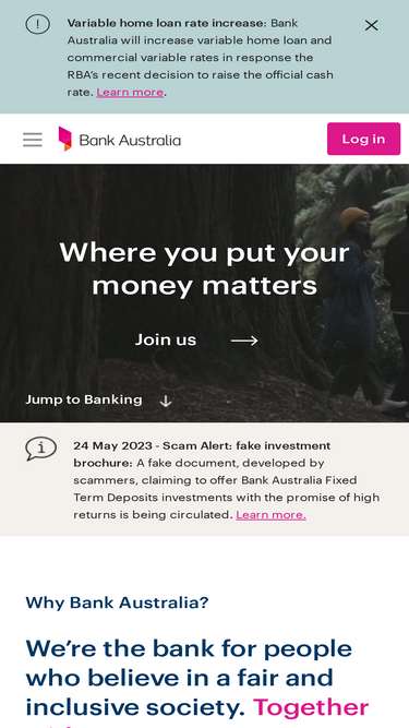 85%Australia’s first customer-owned bank and a certified B Corp, we’re the bank for people and the planet. Your choice of bank could change the world.