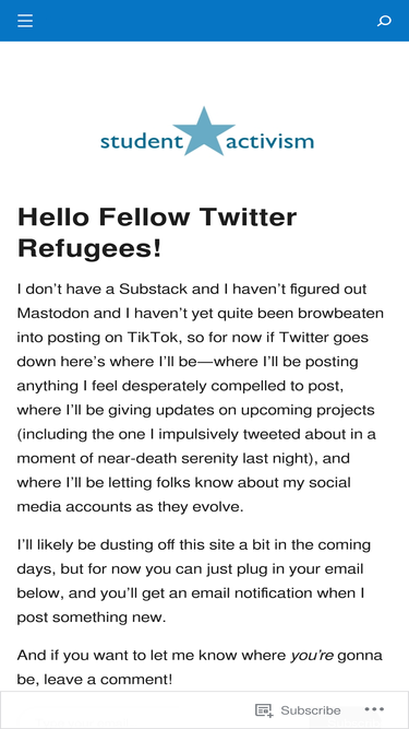 The other five competitors in the top 10 list are feministcampus.org, newdeal.feri.org, aaihs.org, studentactivism.net, and usstudents.org.