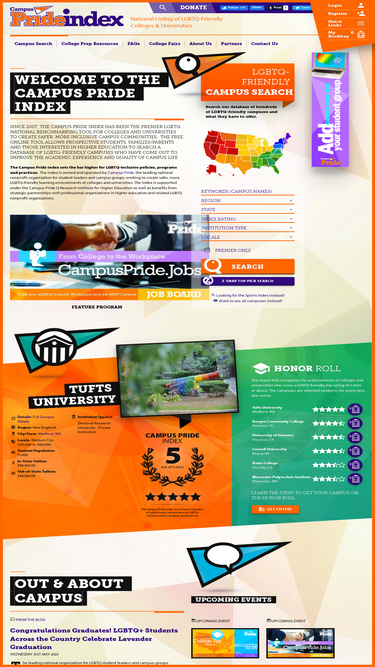 86%The Campus Pride Index is a vital tool for assisting campuses in learning ways to improve their LGBTQ campus life and ultimately shape the educational experience to be more inclusive, welcoming and respectful of LGBTQ and ally people. The index is owned and operated by Campus Pride, the leading national nonprofit organization for student leaders and campus groups working to create safer, more LGBTQ-Friendly learning environments at colleges and universities. The index is supported under the Campus Pride Q Research Institute for Higher Education as well as benefits from strategic partnerships with professional organizations in higher education and related LGBTQ nonprofit organizations.