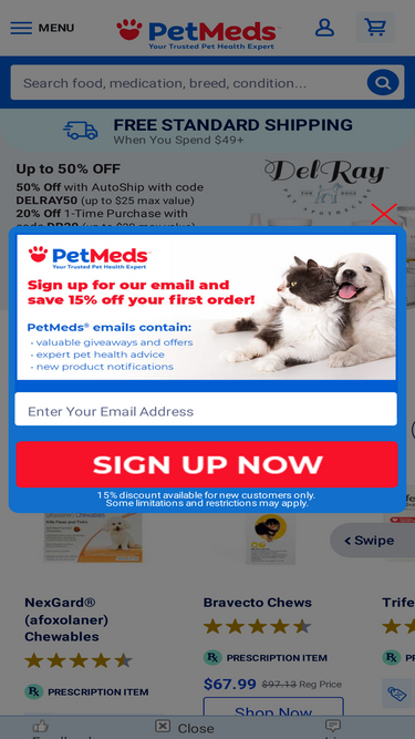 1800PetMeds is your online pet store offering discount prices on pet supplies, medications, vitamins and supplements for your pet. Discount Prices on Pet Supplies, Nexgard, Bravecto, Trifexis, Simparica TRIO, Apoquel, and more.