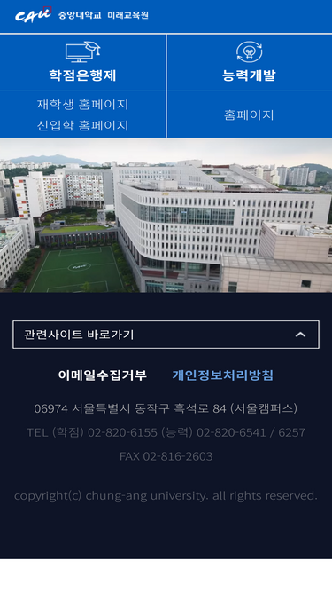76%서울특별시 동작구 소재 중앙대학교 미래교육원은 대학부설 평생교육기관입니다. [문의전화 02-820-6155]