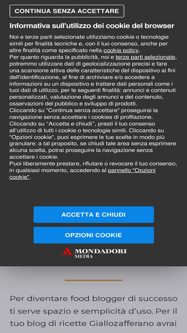 92%Se vuoi diventare food blogger, creator o influencer food apri il tuo blog su Giallozafferano, la più grande community di food blog in Italia